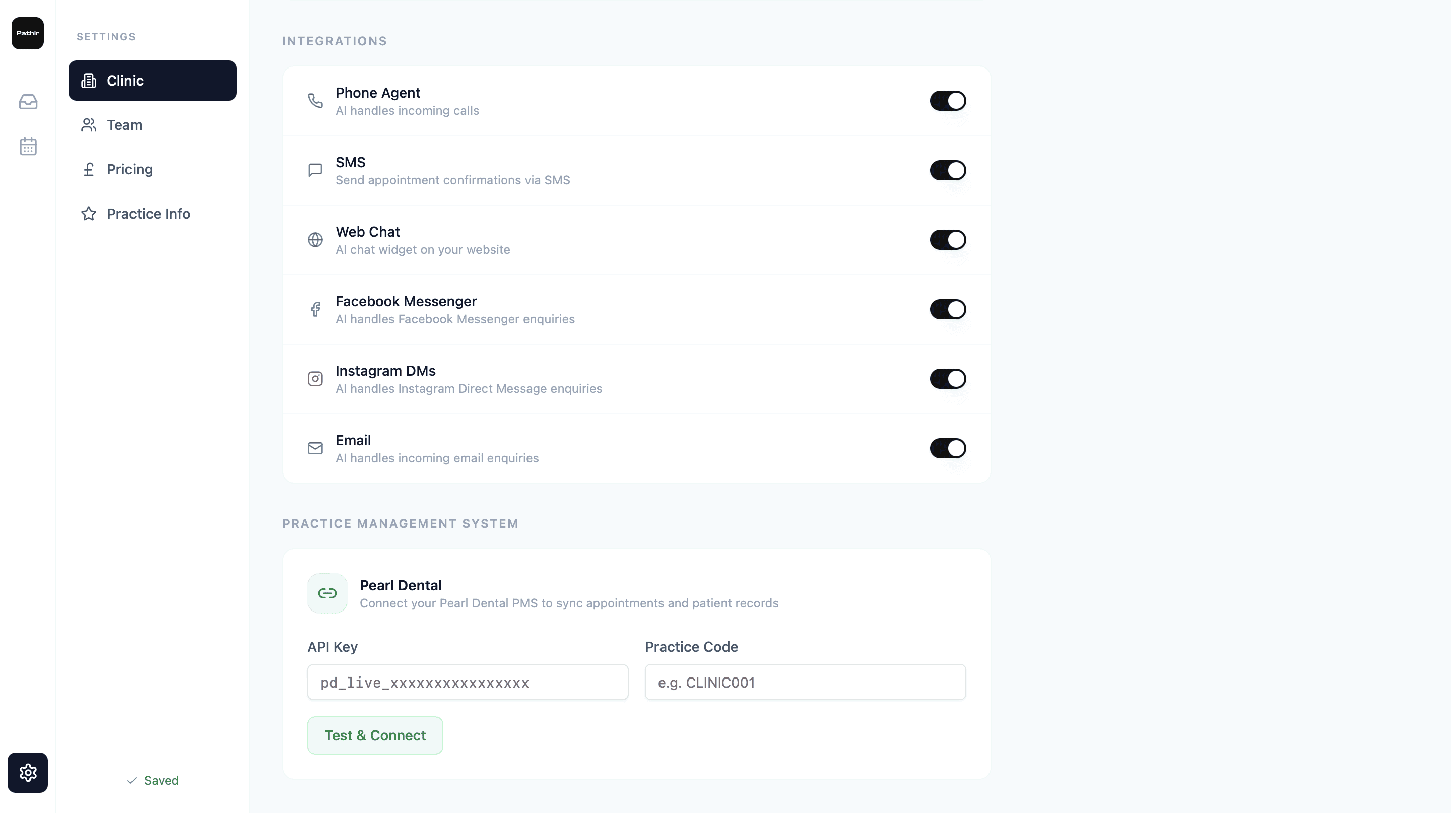 AI-powered layer that can answers clinic calls, chats, emails & social media—with memory.